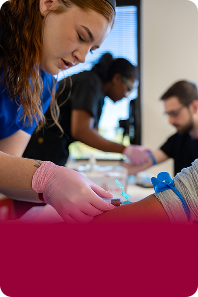 On the first day of class, you will meet your instructor and receive a textbook for guided study. Throughout the 48-hour program, you will participate in 24 hours of instructor-led discussions and presentations, and 24 hours of hands-on training. On the final day, you will demonstrate your blood-drawing skills during an in-class practical exam.